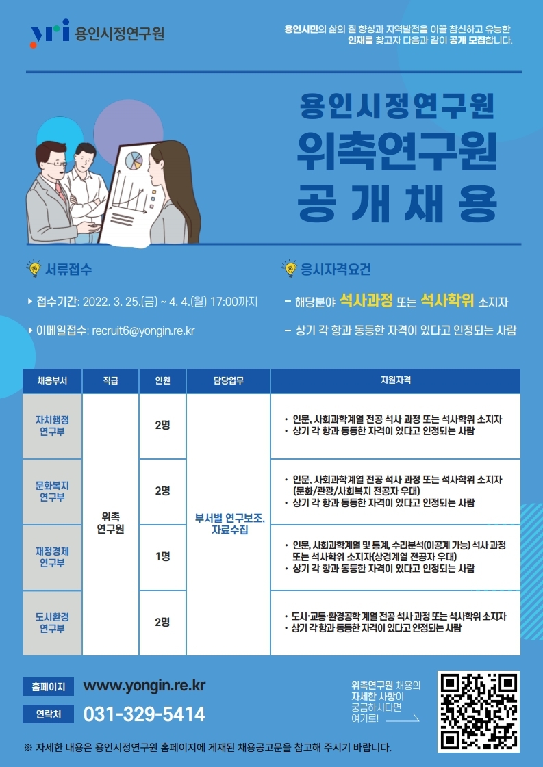 [용인시정연구원] 2022년 제2회 위촉연구원 공개채용 재공고