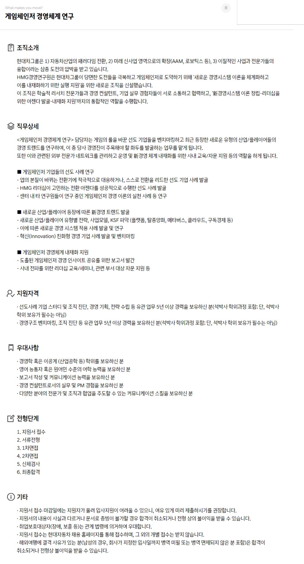[현대자동차] 게임체인저 경영체계 연구 채용 공고