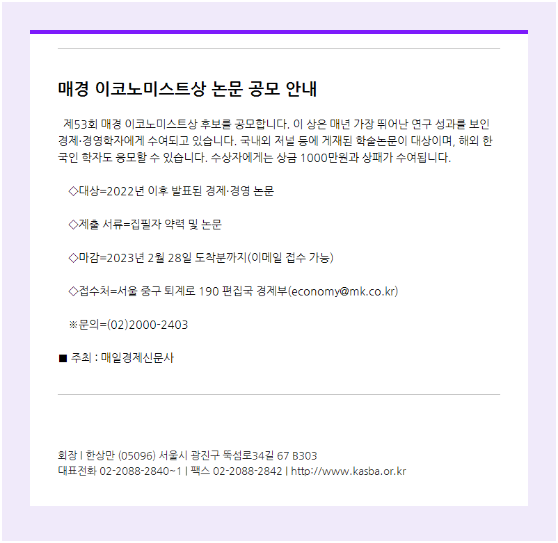 [매일경제] 매경 이코노미스트상 논문 공모 안내