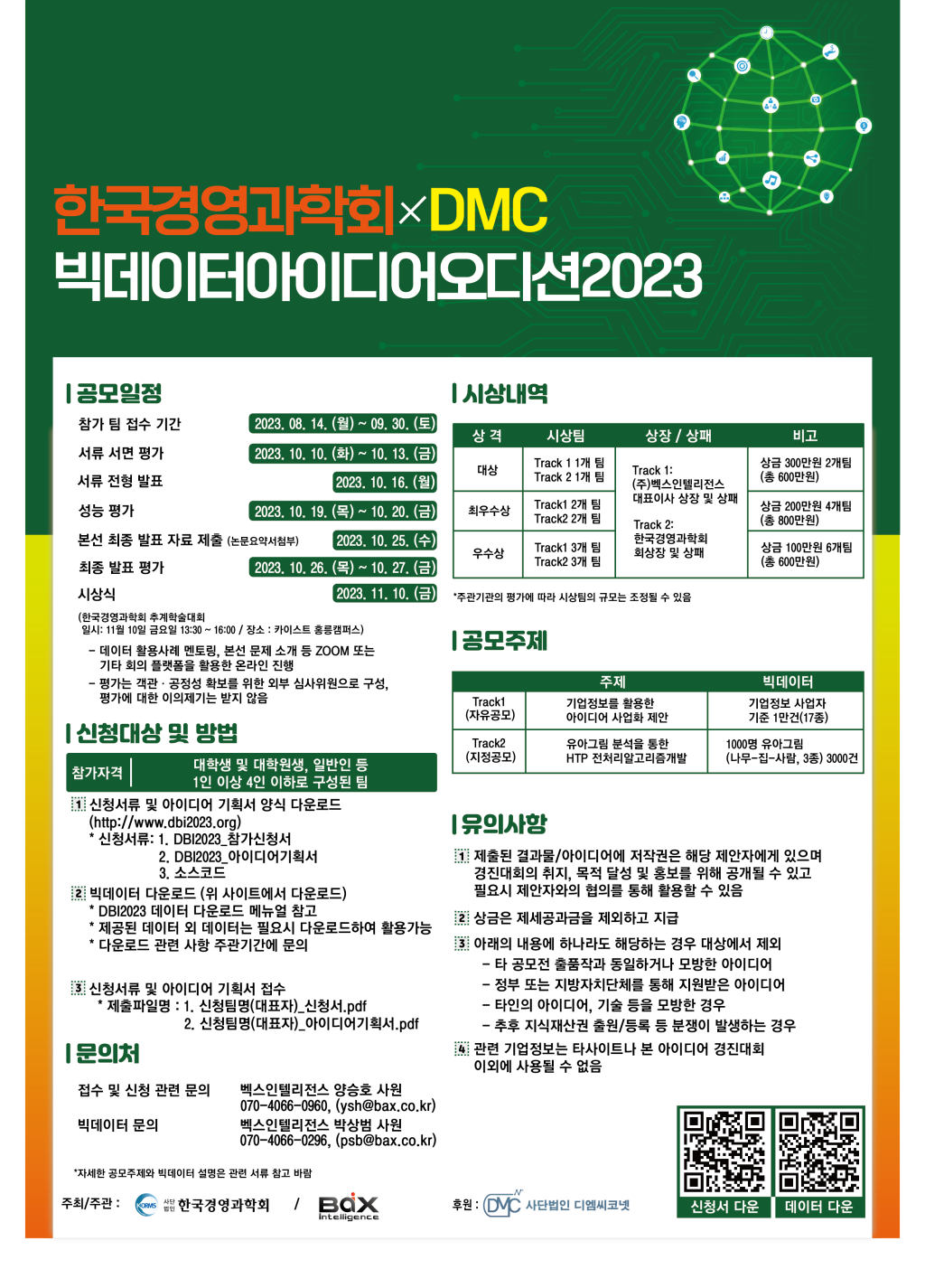 [한국경영과학회] 2023년 DMC 빅데이터 아이디어 오디션(DBI2023) 참가자 모집 공고