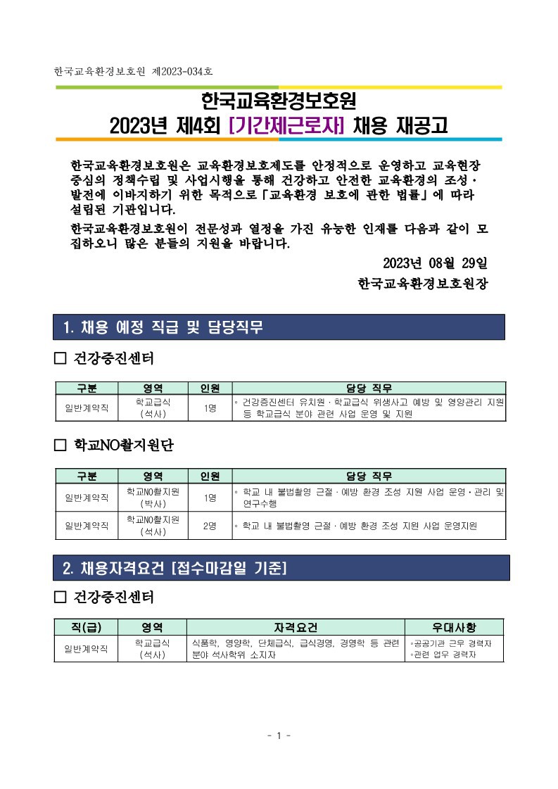 [한국교육환경보호원] 2023년 제4회 [기간제근로자] 채용 재공