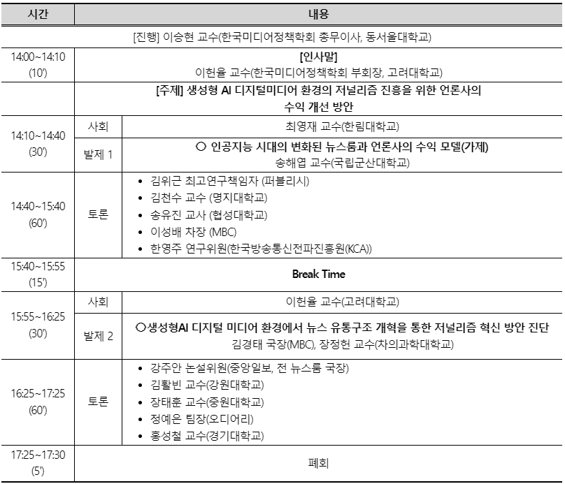 □ 세미나 주제: 생성형 AI 디지털미디어 환경의 저널리즘 진흥을 위한 언론사의 수익 개선 방안 모색