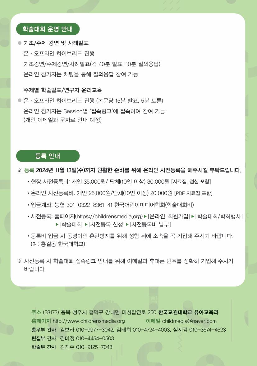[한국어린이미디어학회] 2024년 추계학술대회 사전등록 및 구두발표 논문모집 안내