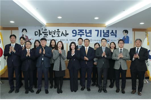 법무부는 12. 26.(월) 11:00 법무부 대회의실에서 「마을변호사 9주년 기념식」을 개최하였다. 이날 행사에서는 ① 조영민 변호사 등 5명이 모범 마을변호사로, ② 경기 화성시‧전북 완주군 등 2개 지자체가 모범 지자체로, ③ 경기 광주시 이지혜 주무관 등 3명이 모범 마을법률담당 공무원으로 각 선정되어 법무부장관 표창을 수여받았다. 이노공 법무부 차관은, 주민의 법률복지 향상을 위해 노력해 온 마을변호사들을 격려하며, “마을변호사 제도의 도입으로 지방 소도시 마을 주민의 법률접근성이 향상되었지만, 여전히 우리 사회에는 법적 도움의 손길을 필요로 하는 소외된 이웃들이 있습니다. 앞으로도 법무부가 추진하는 마을변호사 정책에 많은 관심과 협조를 부탁드립니다.”라고 하였다.