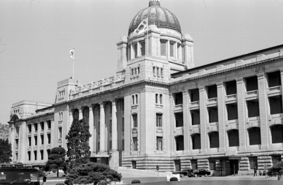 태극기가 걸려 있는 중앙청. 과거 조선총독부 건물로 정부 수립 이후 국회의사당·정부청사 등으로 쓰이다 1995년 철거됐다. [중앙포토]