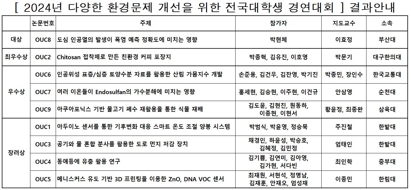 2024년 다양한 환경문제 개선을 위한 전국 대학생 경연대회