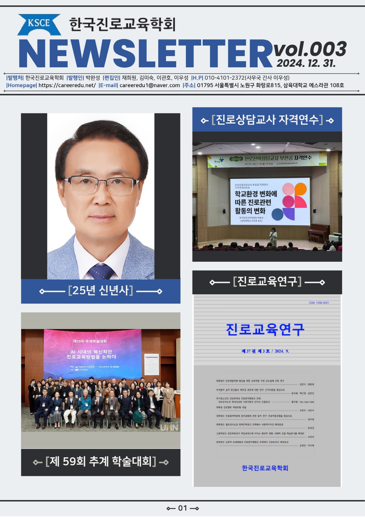 [뉴스레터 vol. 003] 제16대 한국진로교육학회장 신년사
