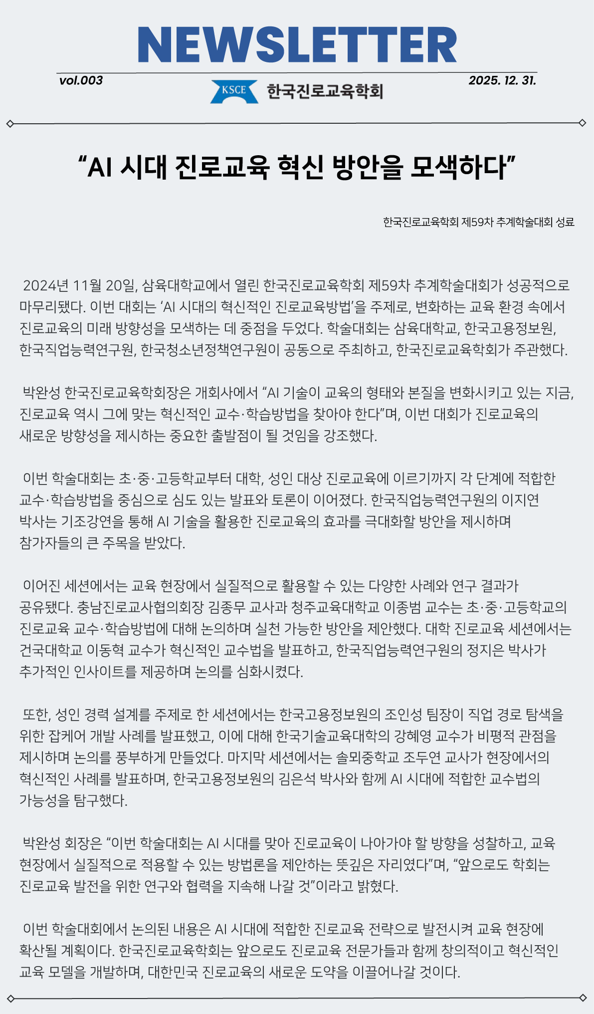 [뉴스레터 vol. 003] 제16대 한국진로교육학회장 신년사