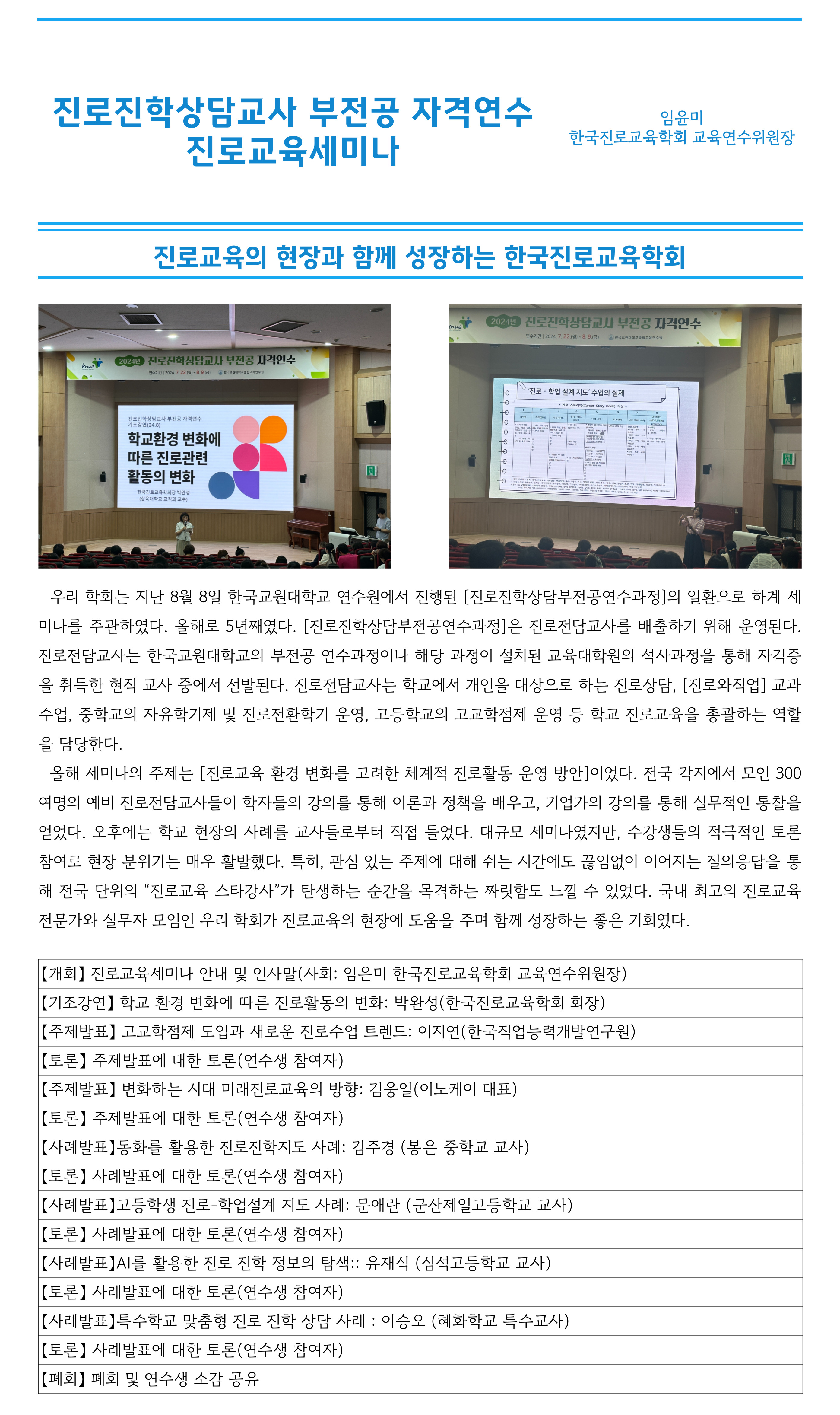 [뉴스레터 vol. 003] 진로진학상담교사 부전공 자격연수 진로교육세미나 보고