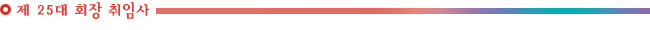 저는 4반세기 역사에 빛나는 우리 한국생산성학회의 지속적인 성장을 위하여 열심히 노력하겠습니다. 새로운 각오로 임하는 신규 회장단 및 임원진들에게 회원님들의 큰 격려를 부탁드립니다. 더불어 어려운 여건 속에서도 학회를 훌륭하게 이끌어 오신 박광태 회장님과 24대 임원진께도 뜨거운 박수 부탁드립니다.