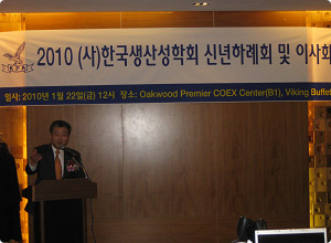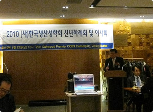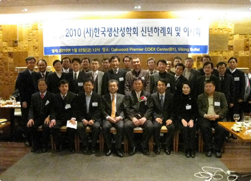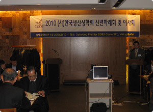 2010년 신년하례회를 1월 22일(금) 서울 삼성동의 오크우드 호텔 지하의 바이킹뷔페에서 성황리에 열렸습니다. 기존과는 달리 유럽식으로 1시간 식사를 자유롭게 한 후 하례회 및 이사회 관련 순서가 사무국장인 한양대의 이창원 교수의 사회로 진행되었습니다. 전체 50여분이 넘는 회원분들이 참석해 주셨으며, 특별히 한국생산성본부의 최동규 회장님이 자리를 빛내주셨습니다.
