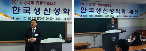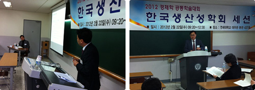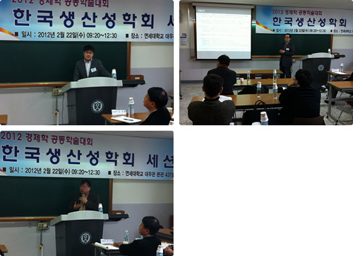 2012 경제학 공동학술대회가 2010년 2월 22일(수) 연세대학교 대우관에서 개최되었습니다. 참석해 주신 발표자 및 토론자와 좌장을 맡아 주신 회원님께 감사의 말씀을 올리며, 생산성에 대한 관심으로 참여해주신 일반 패널에게도 진심으로 감사드립니다.