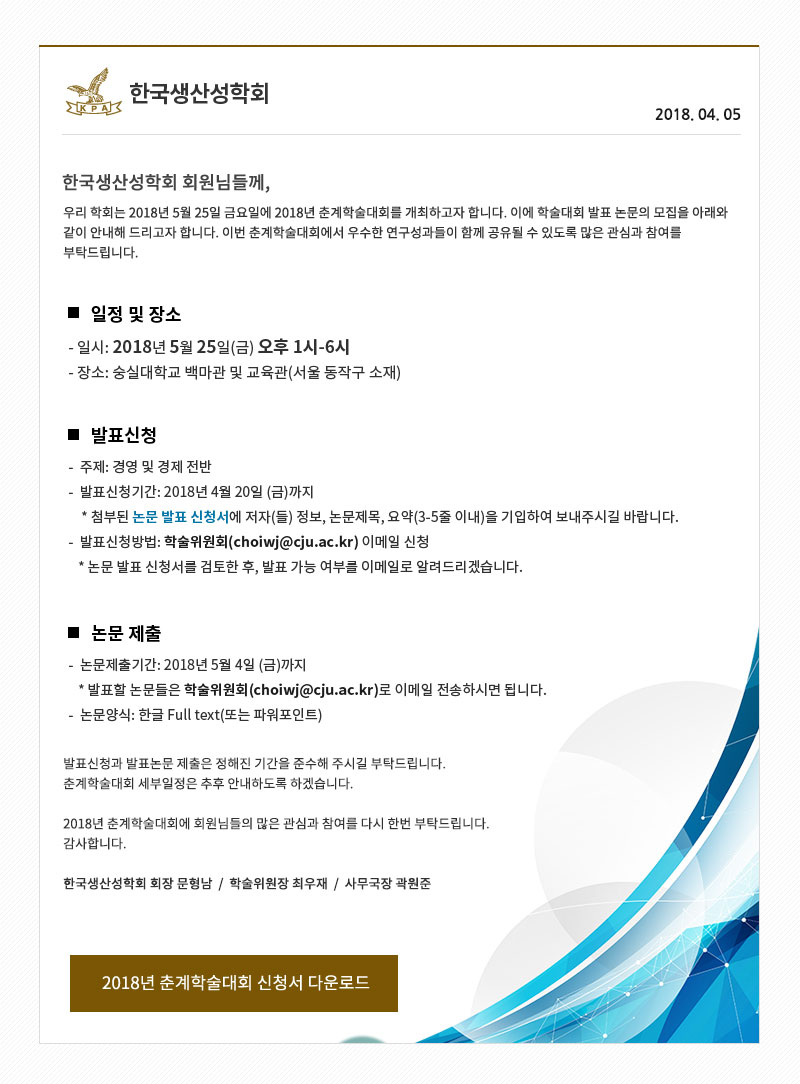 (사)한국생산성학회 2017년 추계학술대회 안내
