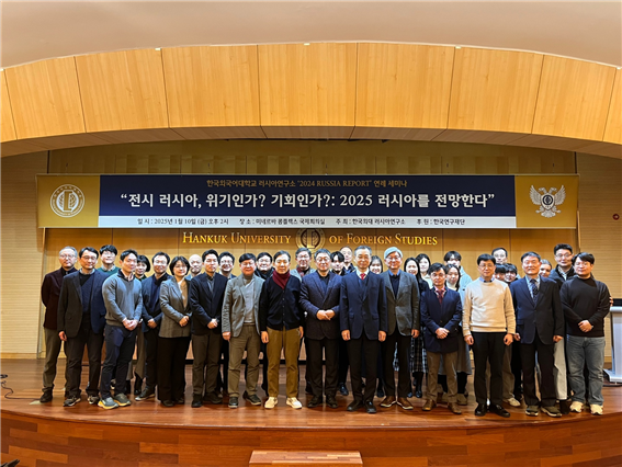 2025년 1월 10일(금)에 러시아연구소(소장 표상용) HK+사업단은 연례 보고서 Russia Report 발행의 일환으로 연례 세미나 ‘전시 러시아, 위기인가? 기회인가?: 2025 러시아를 전망한다’를 개최했다. Russia Report 세미나는 러시아연구소가 매년 1월에 여는 정기 학술행사이다. 이번 세미나는 러시아-우크라이나 전쟁이 3년 차로 접어드는 가운데 러시아가 당면한 위기와 이러한 상황이 기회로 전환된 복잡한 현상에 초점을 맞춰 구성됐다.