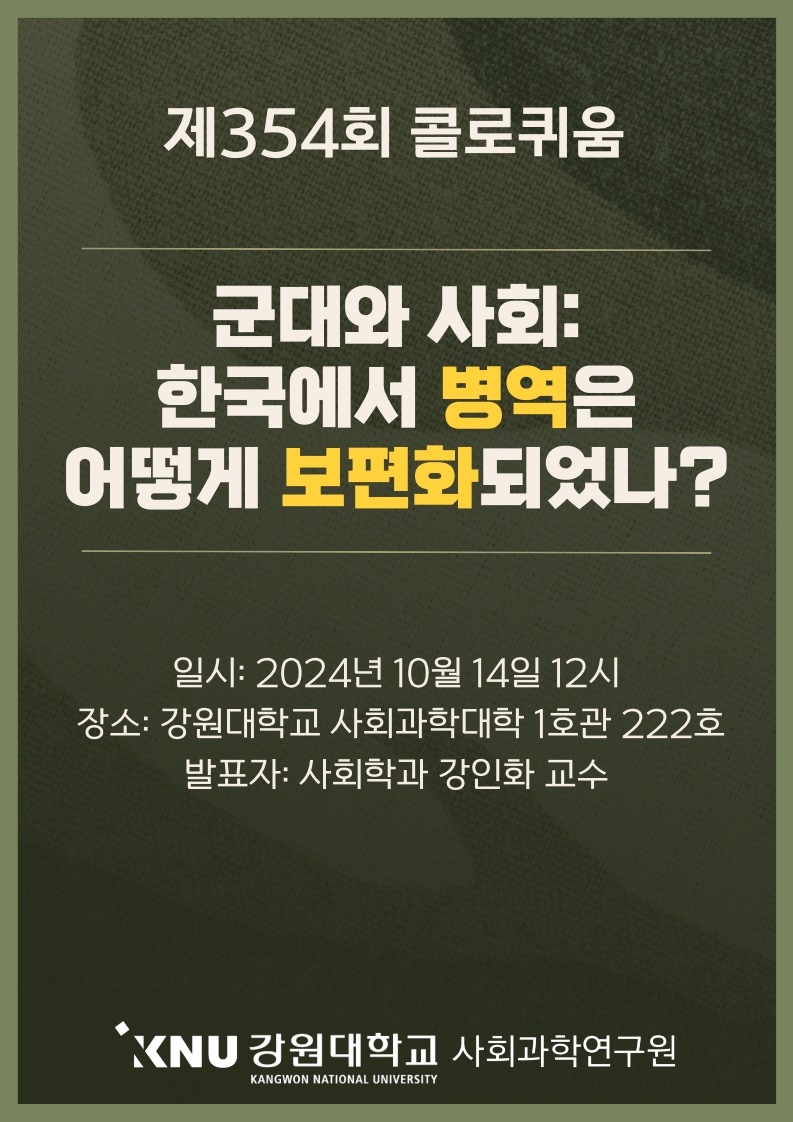 사회과학연구원에서는 다음과 같이 제354회 콜로퀴움을 개최하오니,
