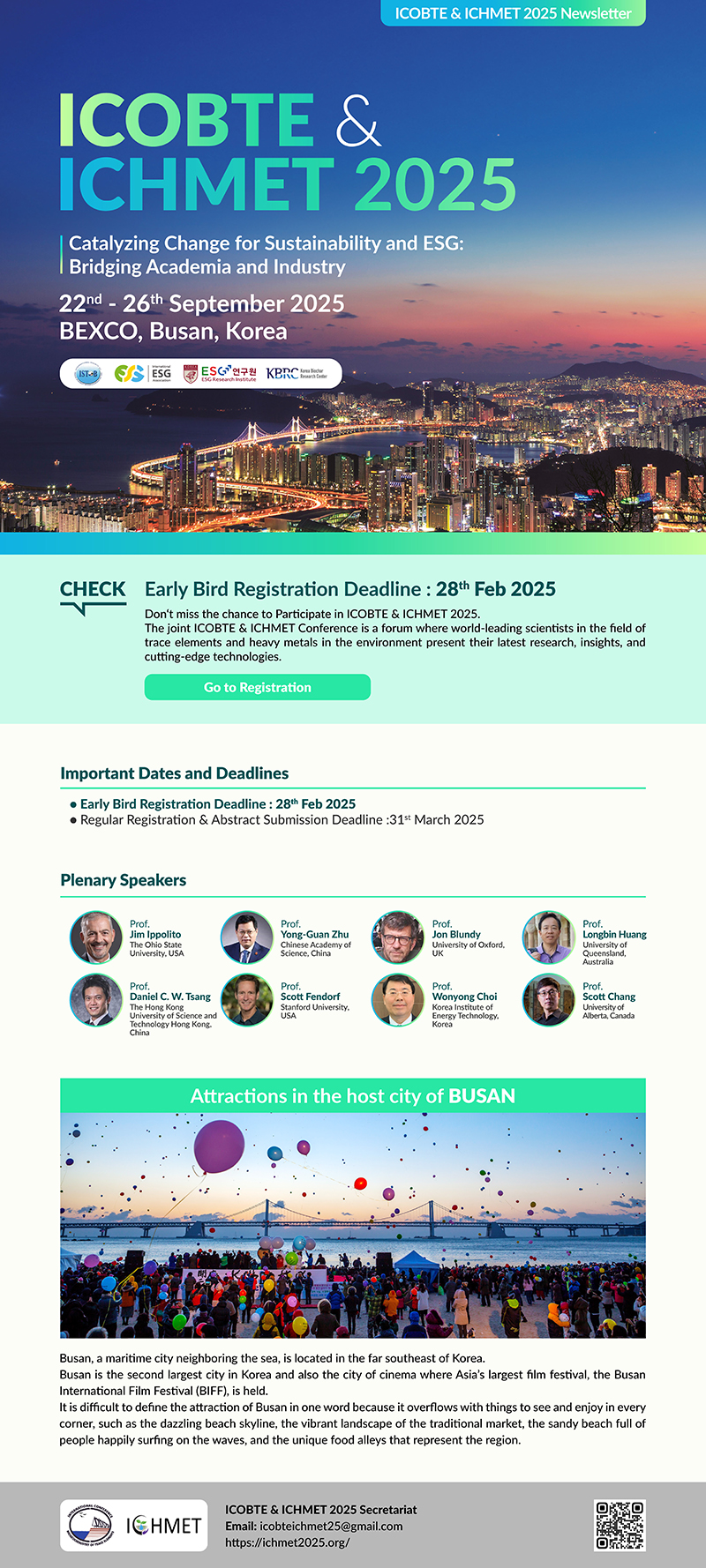 국제학술대회(ICOBTE) 및 환경 중 중금속 관련 국제학술대회(ICHMET)가 개최될 예정입니다.