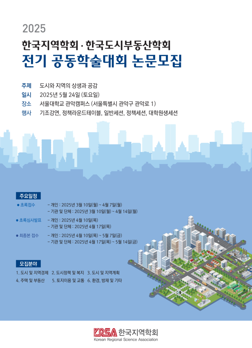 2025년 한국지역학회 & 한국도시부동산학회 전기 공동학술대회 논문모집 안내