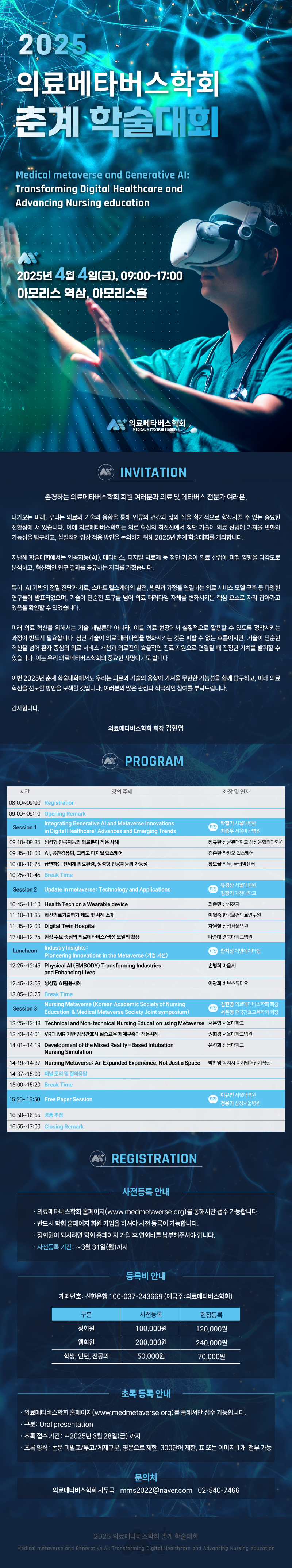 - 사전등록 : 의료메타버스학회 홈페이지 (https://www.medmetaverse.org/html/?pmode=inputList