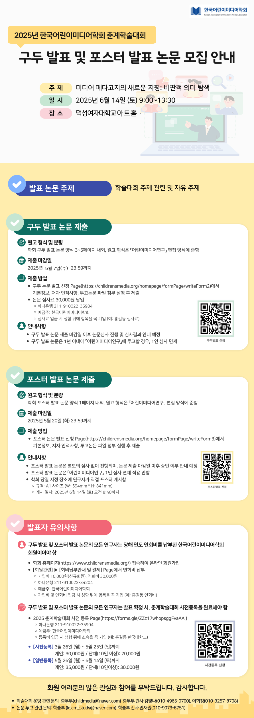 포스터발표(3/26 ~ 5/20): https://childrensmedia.org/homepage/formPage/writeForm3