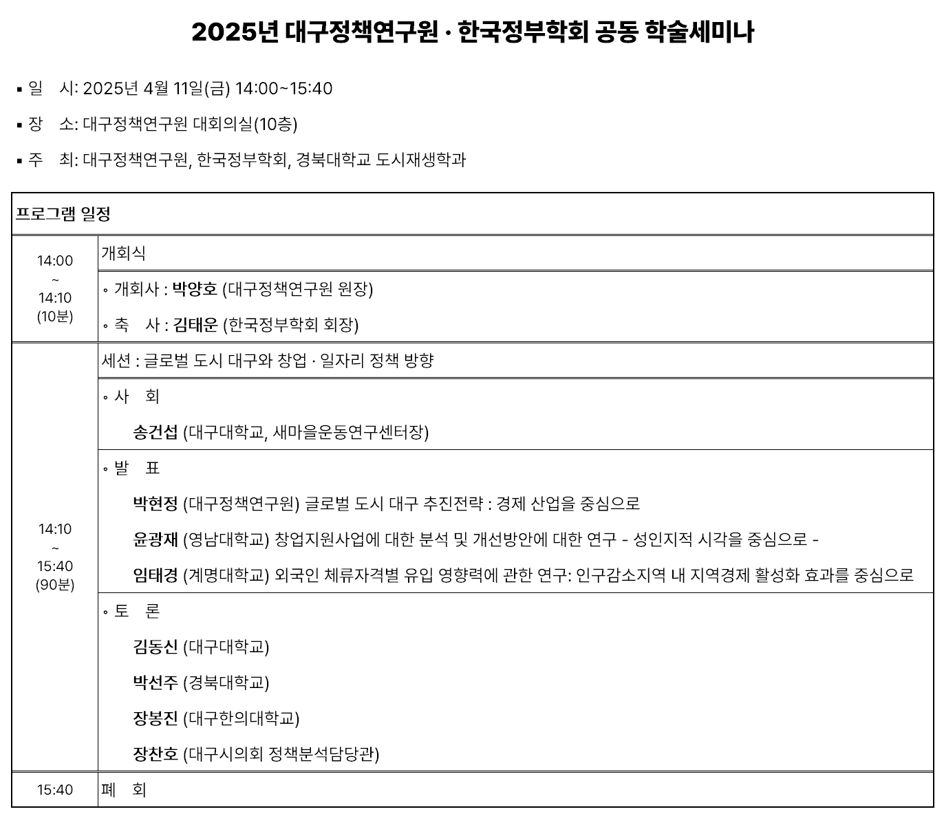 2025년 (사)한국정부학회 춘계학술세미나 안내