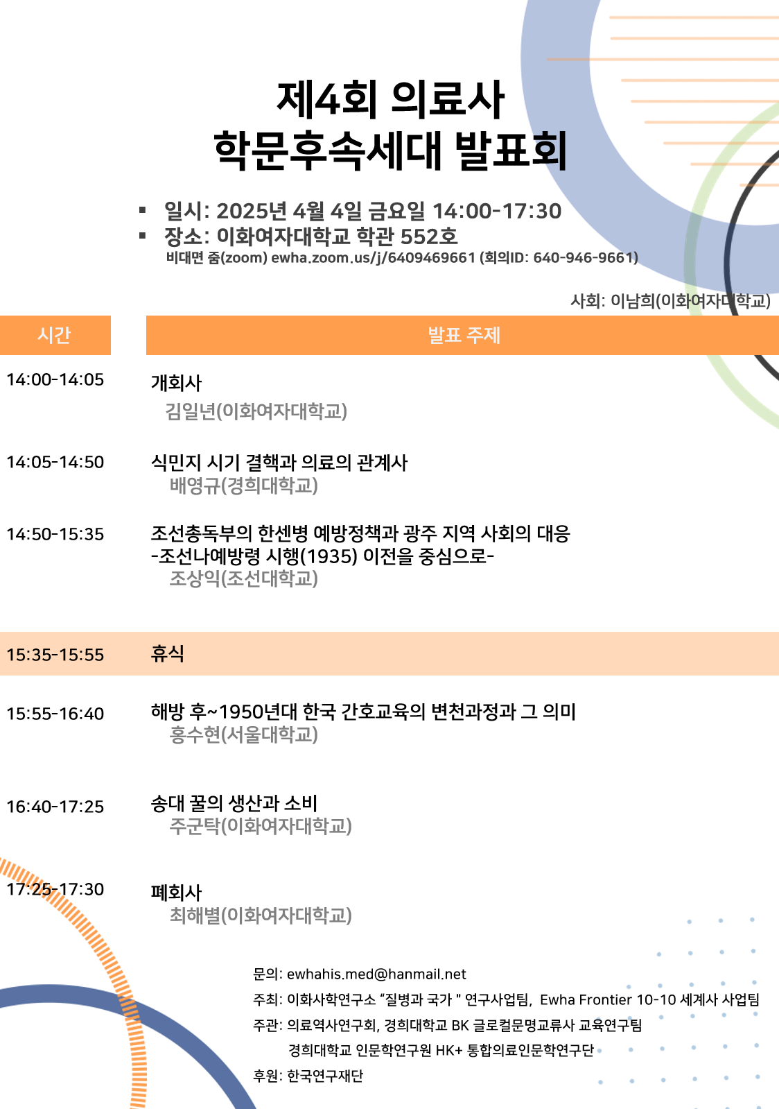 [의료역사연구회] 제 4회 의료사 학문후속세대 발표회
