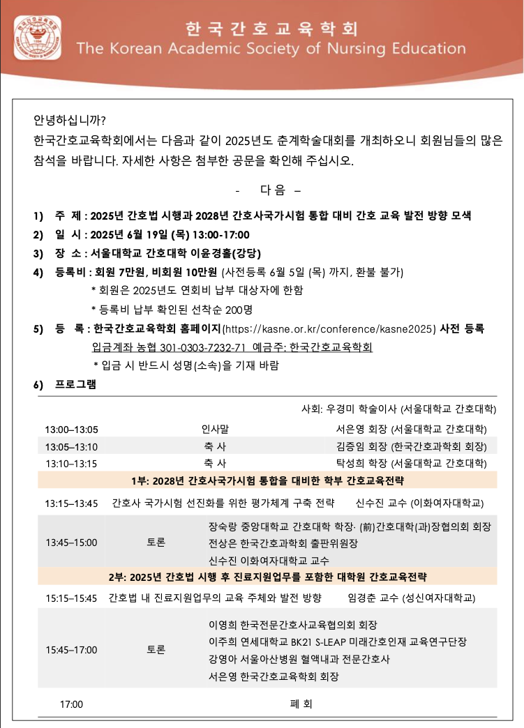 [한국간호교육학회] 2025년 춘계학술대회 개최 안내 (등록 마감)