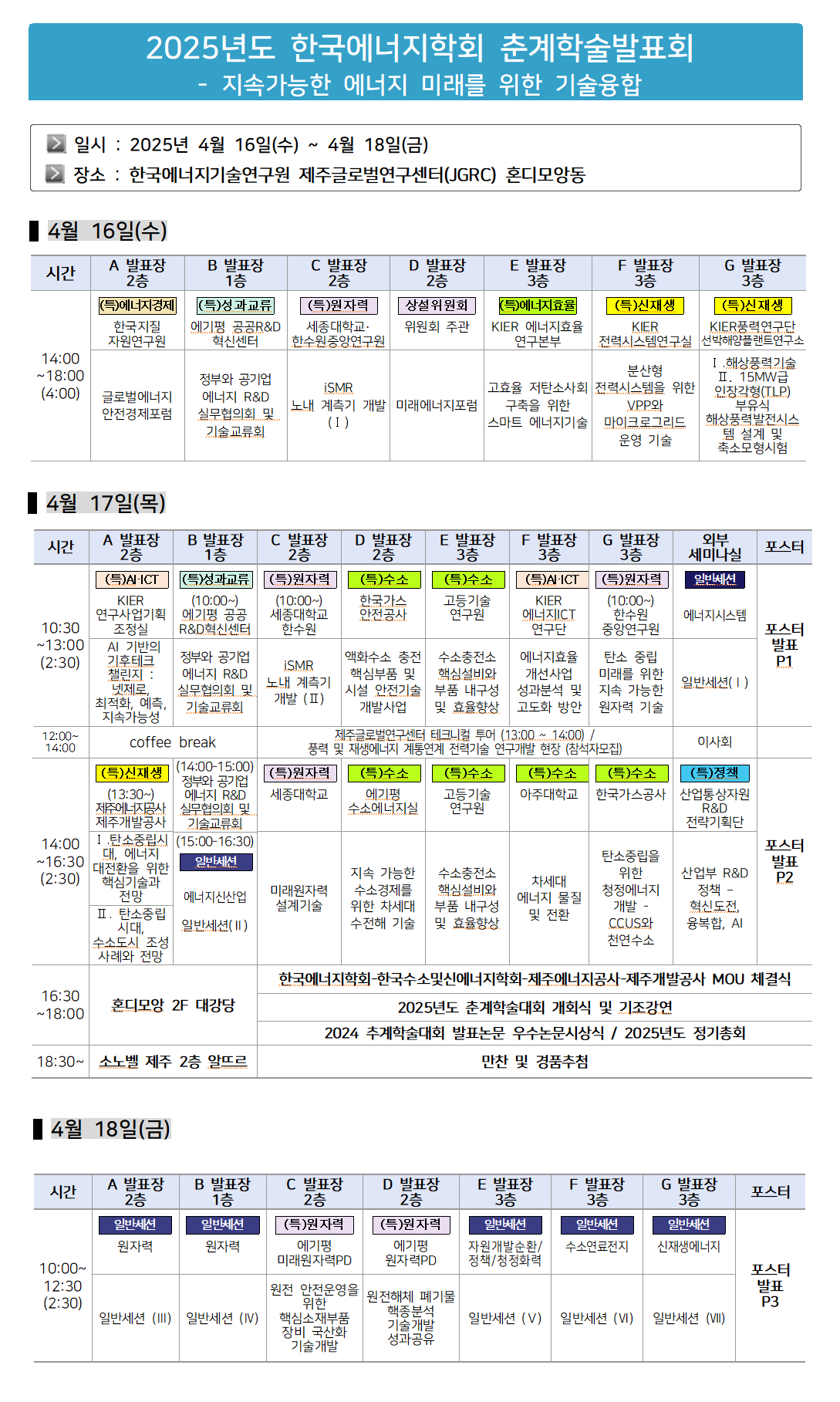- 분과별 구두발표는 4/17(목) ~ 4/18일(금) 양일간 진행됩니다.