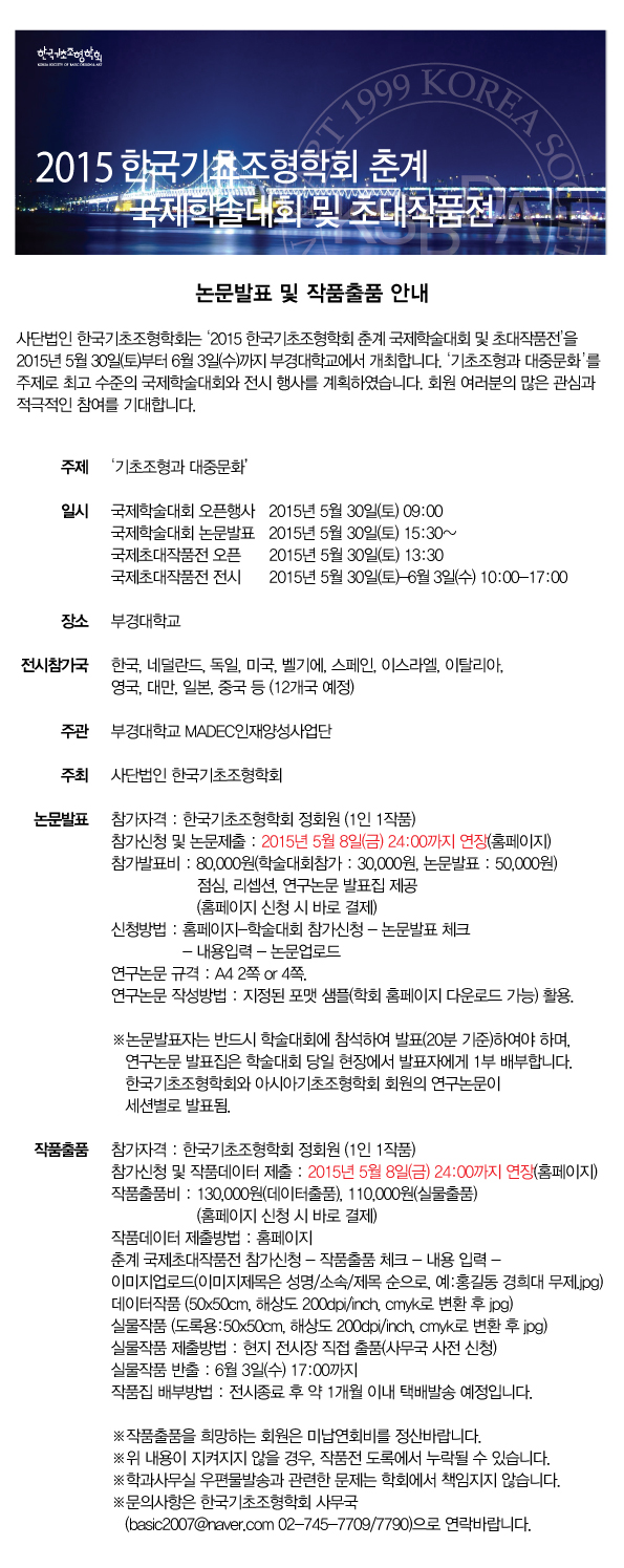 2015 한국기초조형학회 춘계 국제학술대회 및 초대작품전 접수마감 연장 안내