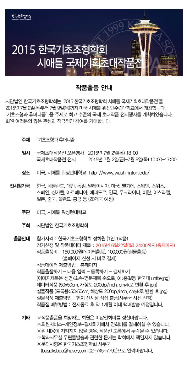 2015 한국기초조형학회 시애틀 국제기획초대작품전 접수마감 연장 안내