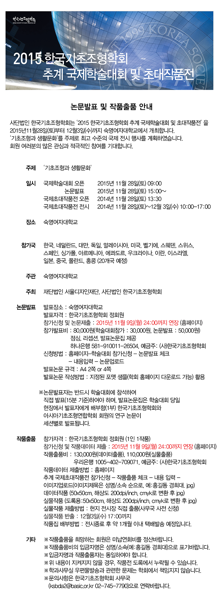 2015 한국기초조형학회 추계 국제학술대회 및 초대작품전 접수마감 연장 안내