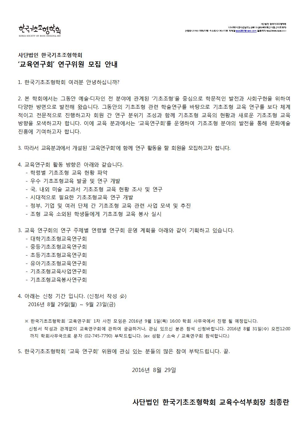 KSBDA '교육연구회' 연구위원 모집안내