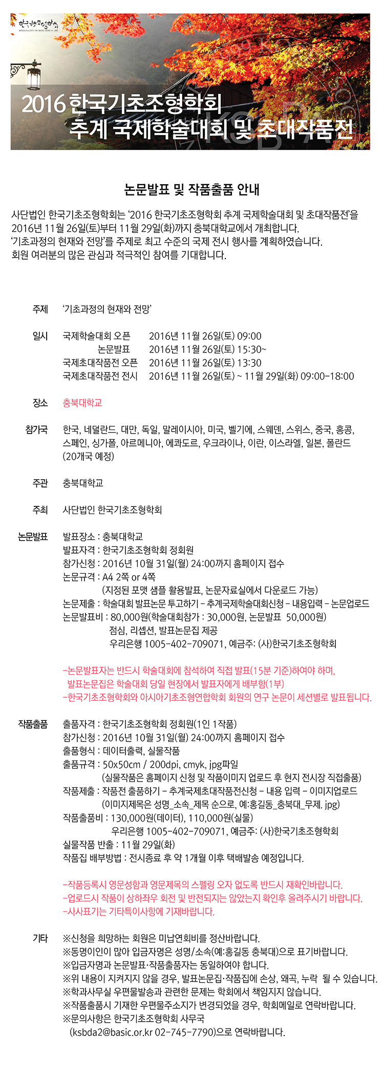 2016 한국기초조형학회 추계 국제학술대회 및 초대작품전