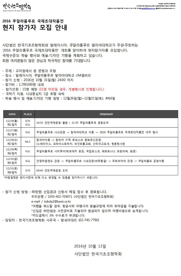 2016 한국기초조형학회 쿠알라룸푸르 국제초대작품전 현지참가자 모집 안내
