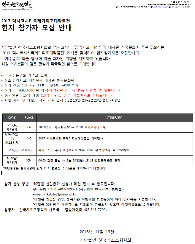 2017 한국기초조형학회 멕시코시티 국제기획초대작품전 현지참가자 모집 안내