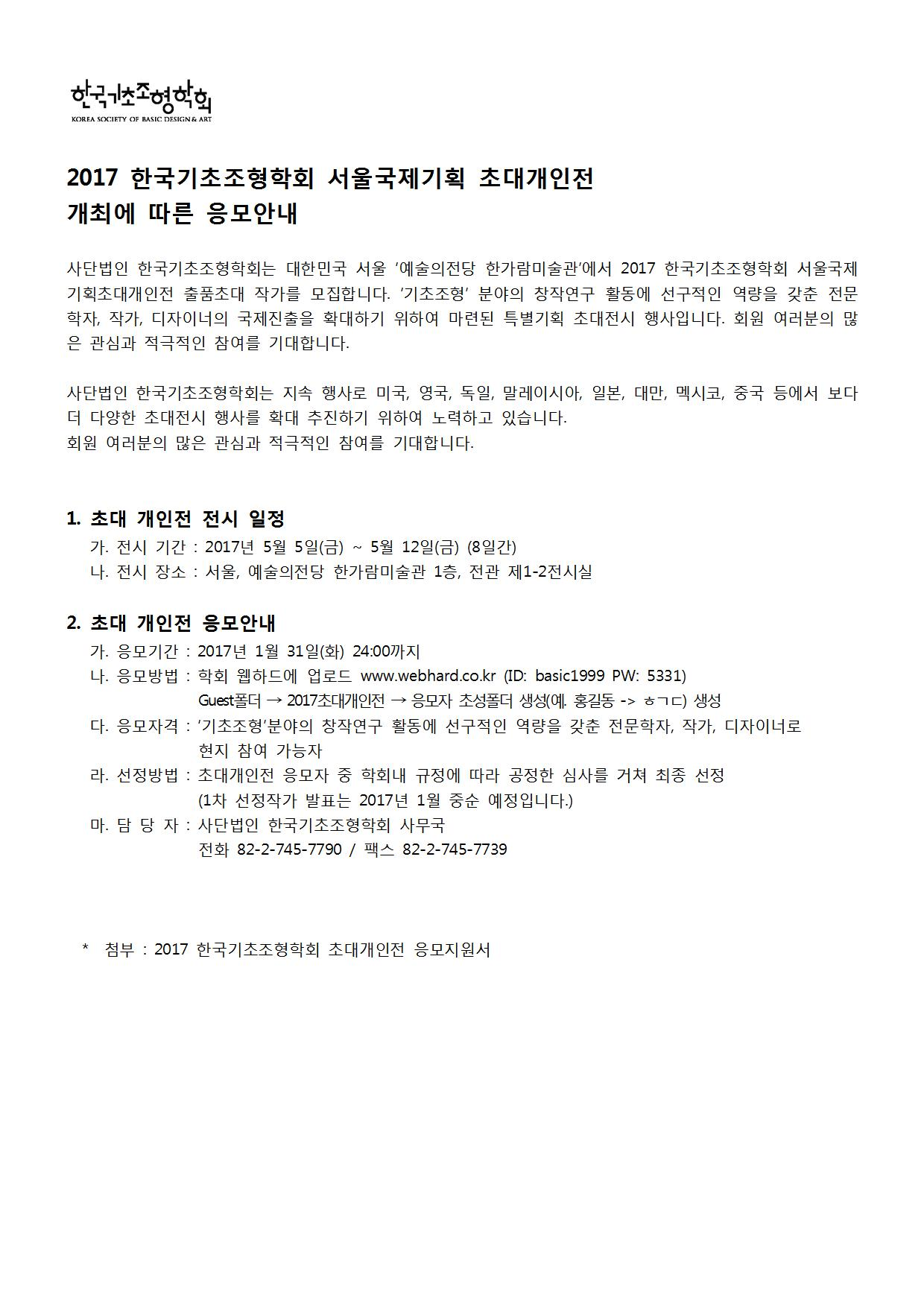 2017 한국기초조형학회 초대개인전 개최에 따른 응모 안내