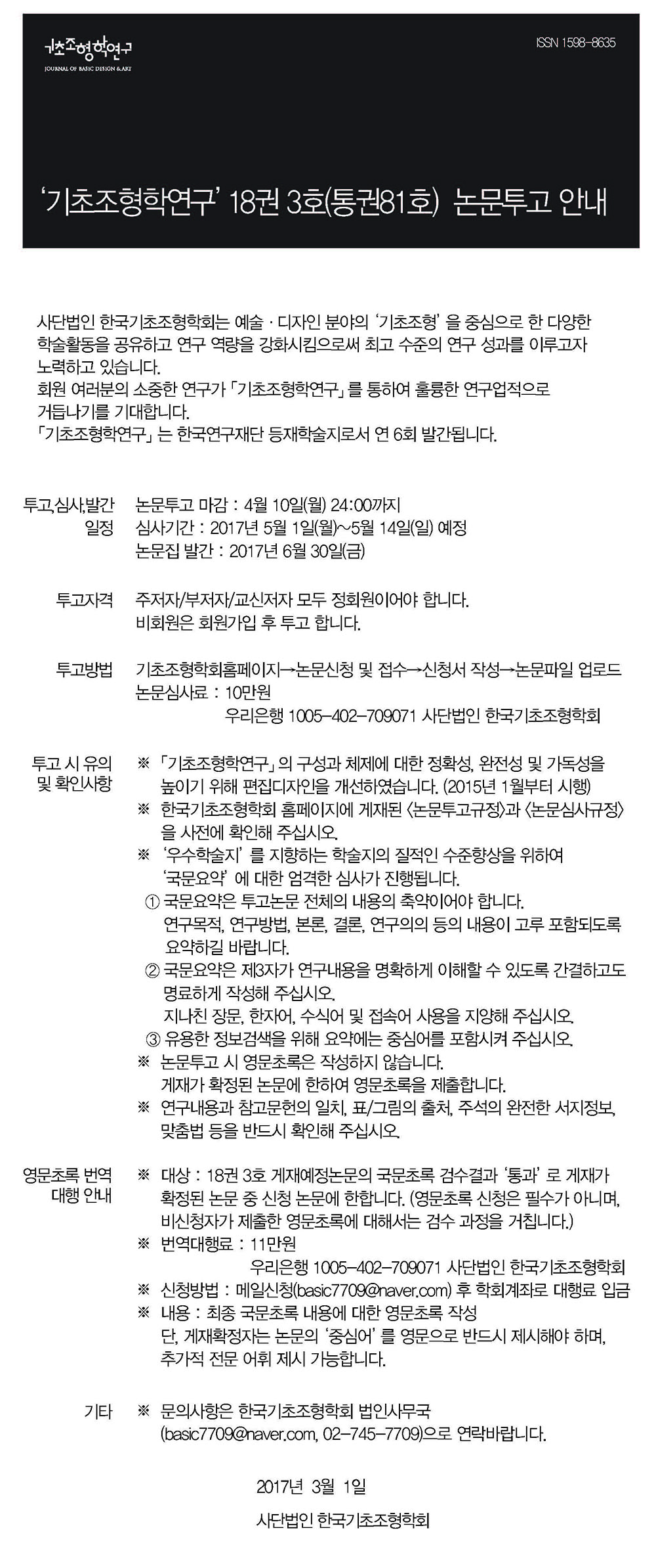 KSBDA '기초조형학연구' 18권 3호(통권81호) 논문투고 안내