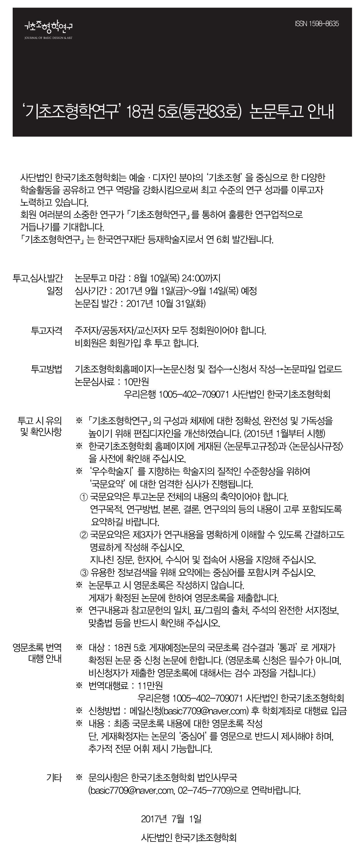 KSBDA '기초조형학연구' 18권 5호(통권83호) 논문투고 안내