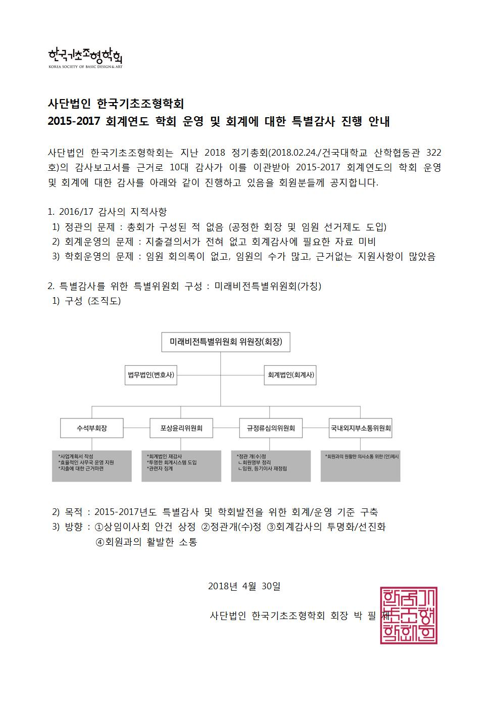 학회 운영 및 회계에 대한 특별감사 진행 안내