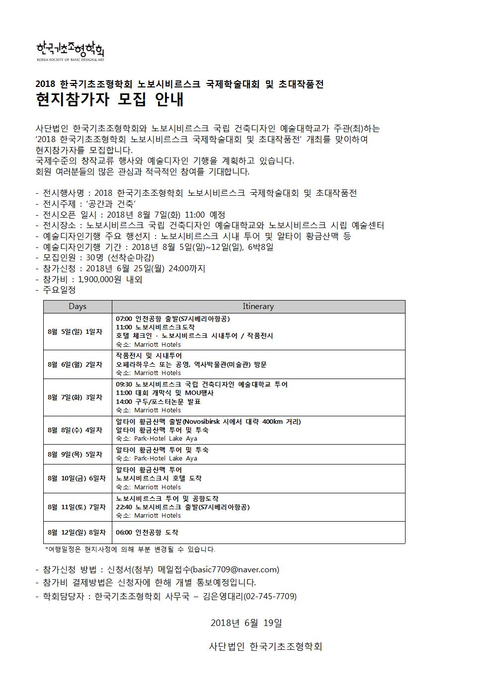 2018 한국기초조형학회 노보시비르스크 국제학술대회 및 초대작품전 현지참여자 모집 안내