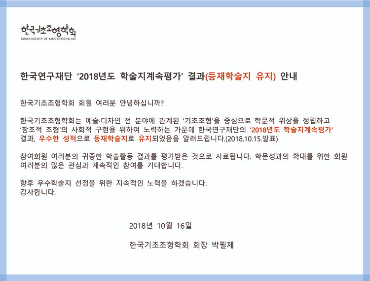 한국연구재단 2018년도 학술지계속평가 결과(등재학술지유지)안내