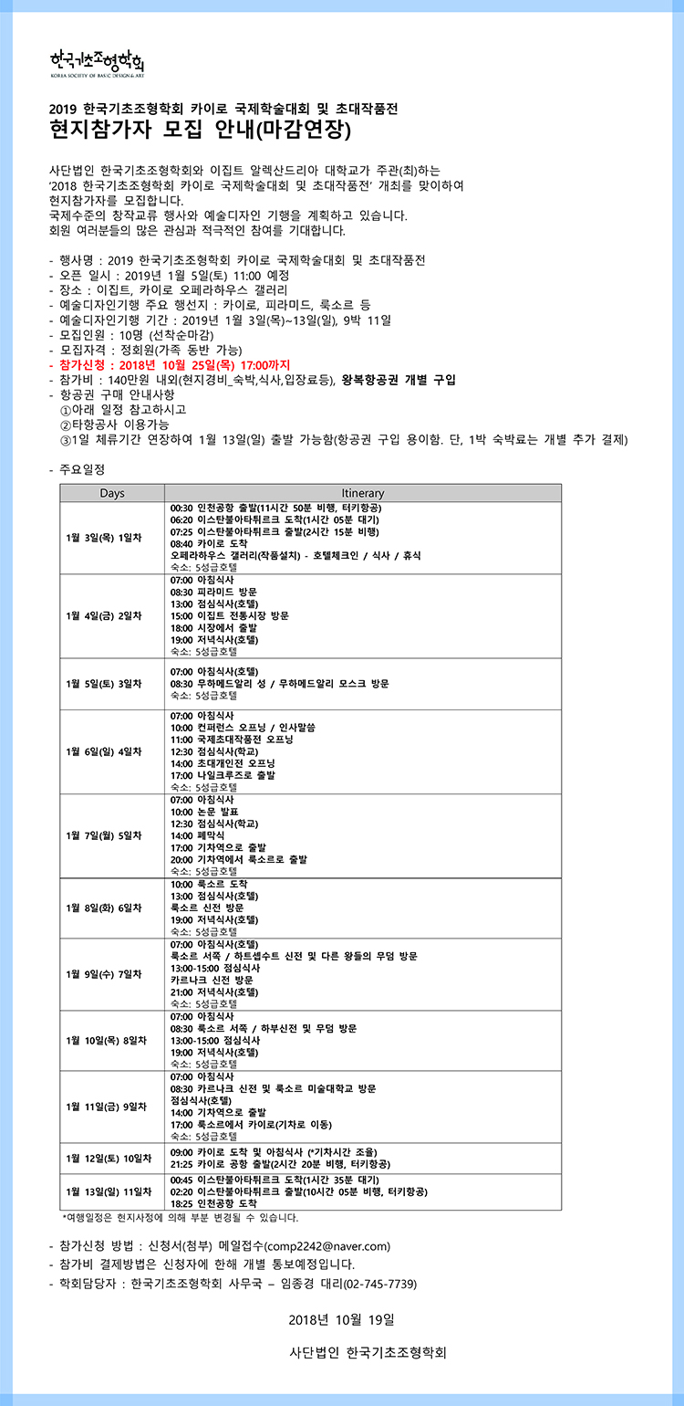 2019 한국기초조형학회 카이로 국제학술대회 및 초대작품전 현지참가자 모집 안내(마감연장)