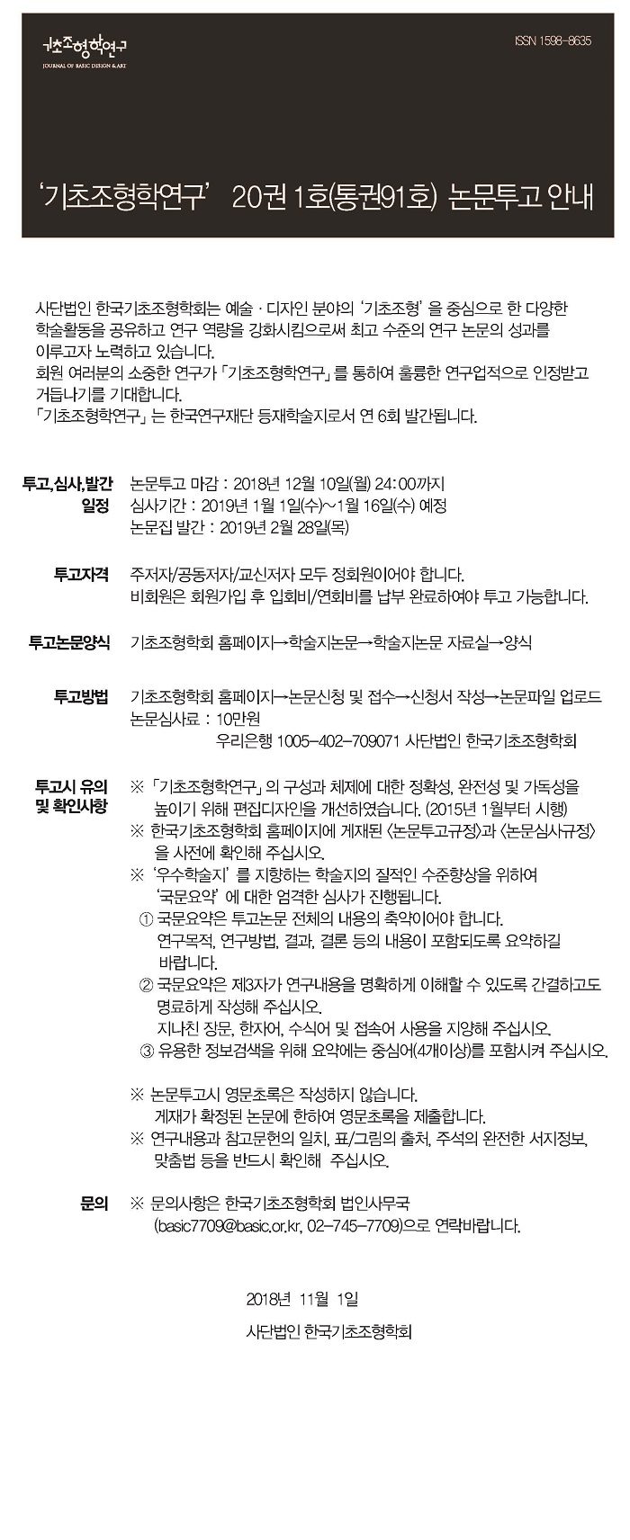 KSBDA '기초조형학연구' 20권 1호(통권91호) 논문투고안내