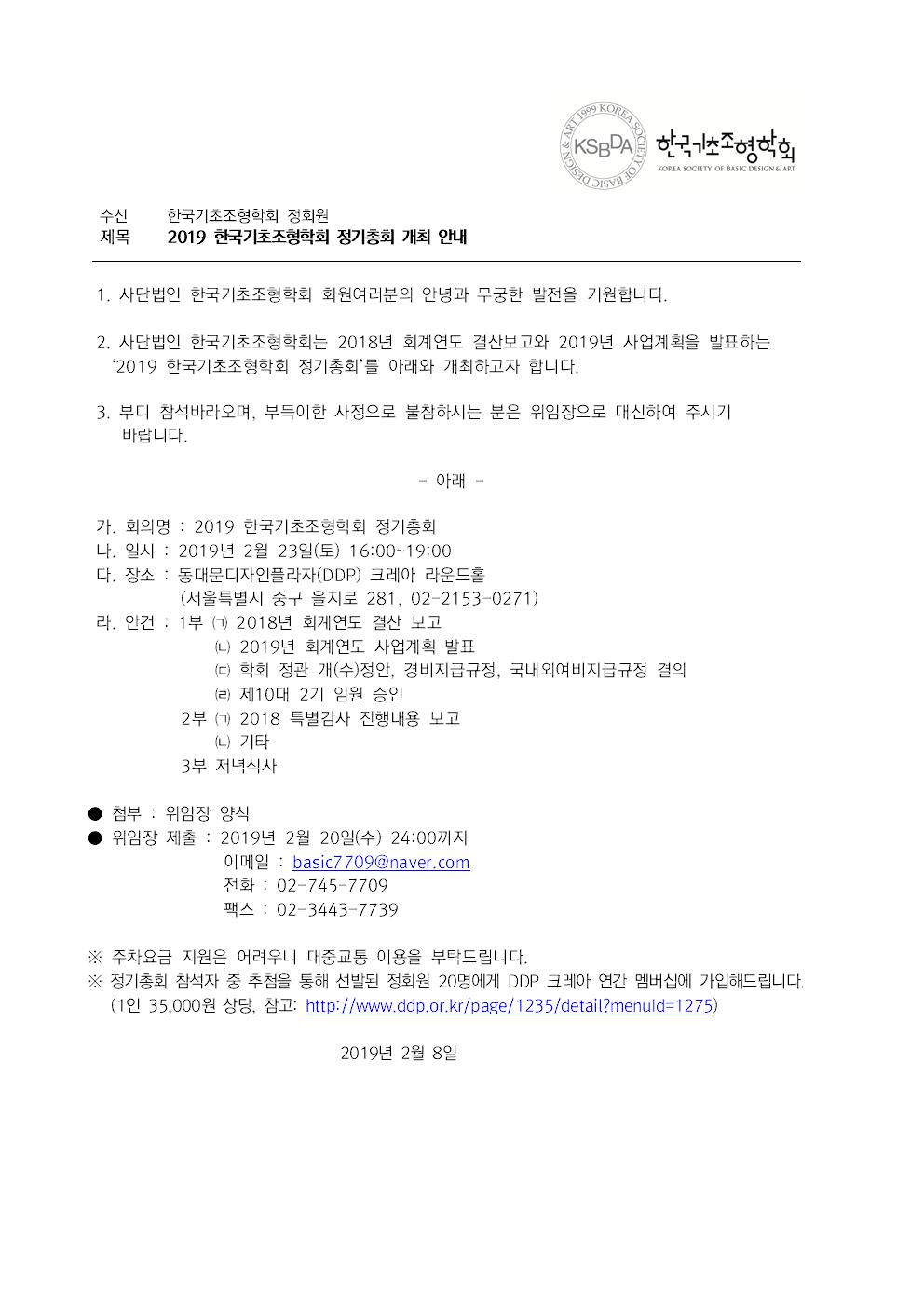 2019 한국기초조형학회 정기총회 개최 안내