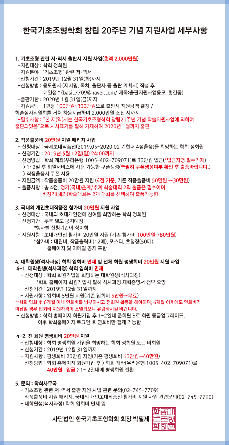 한국기초조형학회 창립 20주년 기념 지원사업