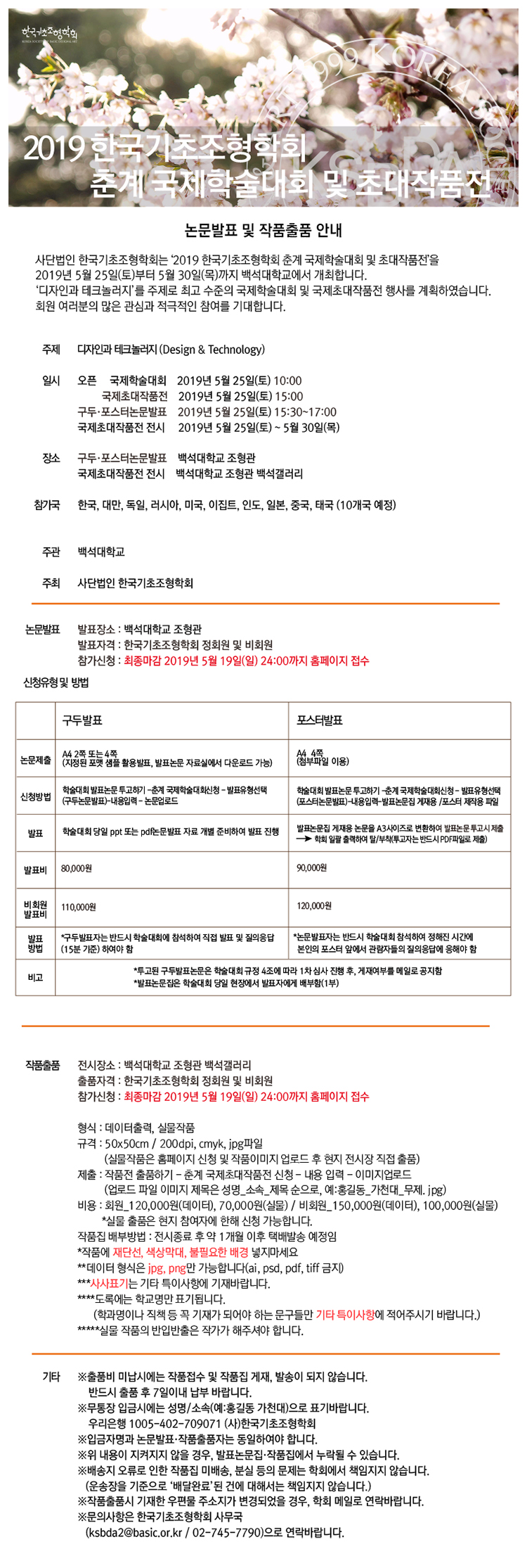 2019 한국기초조형학회 춘계 국제학술대회 및 초대작품전 개최 안내
