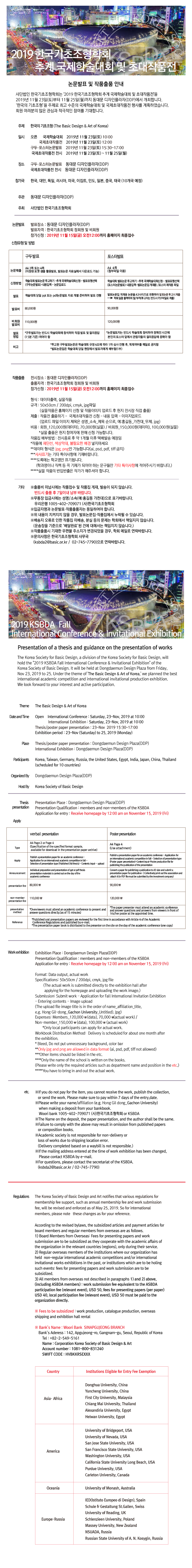 2019 한국기초조형학회 추계 국제학술대회 및 초대작품전 개최 안내