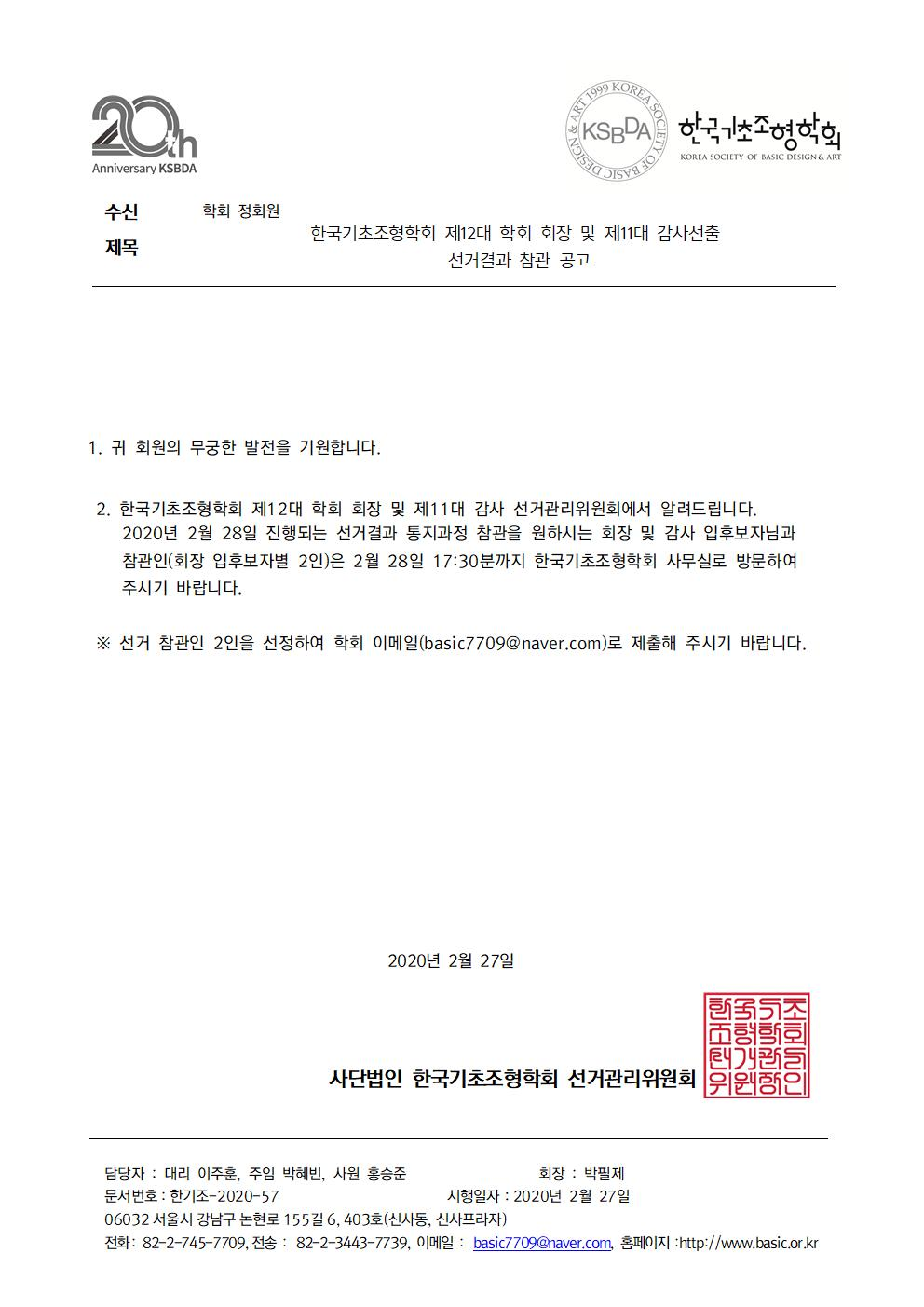 2020 한국기초조형학회 선거인명부 최종확인 공고 및 선거안내(첨부)