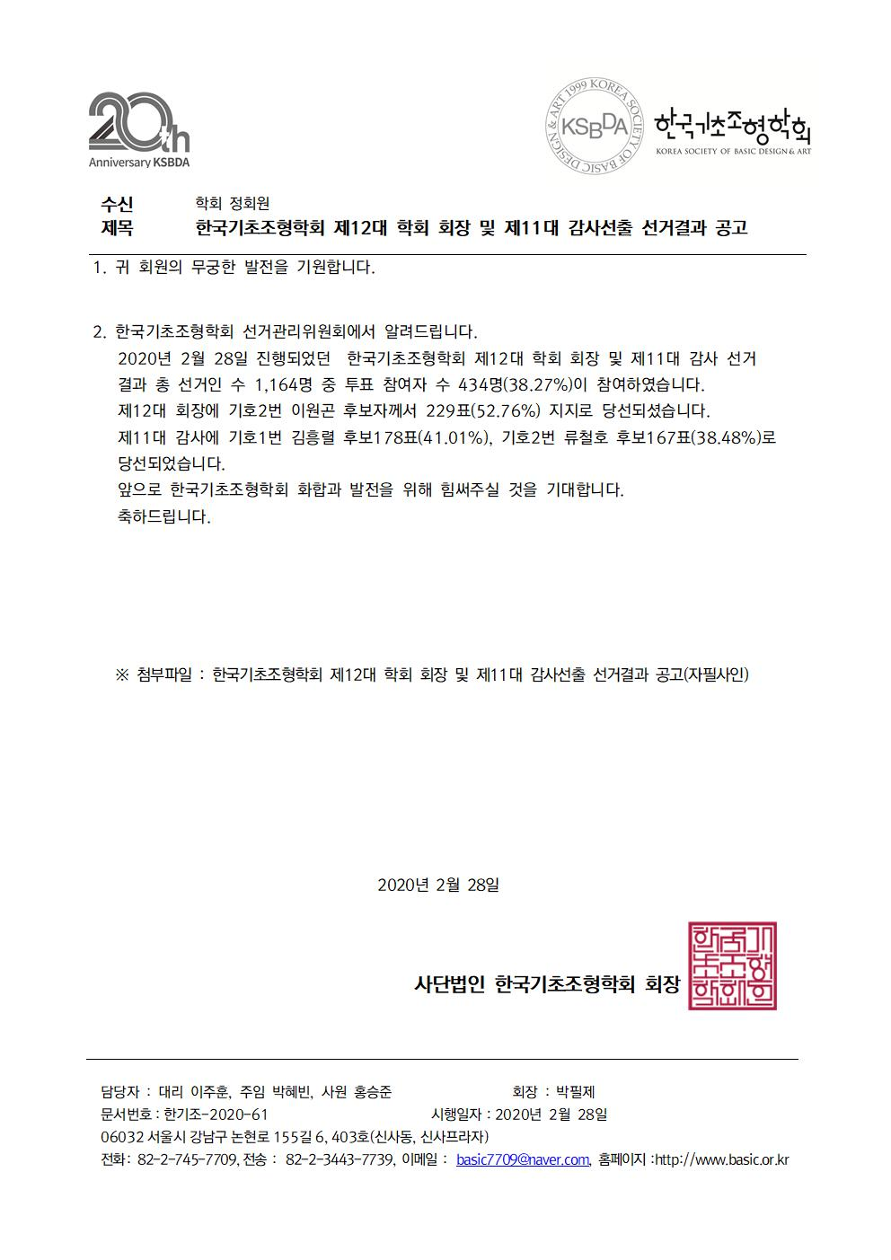 한국기초조형학회 제12대 학회 회장 및 제11대 감사선출 선거결과 공고(자필사인).PDF