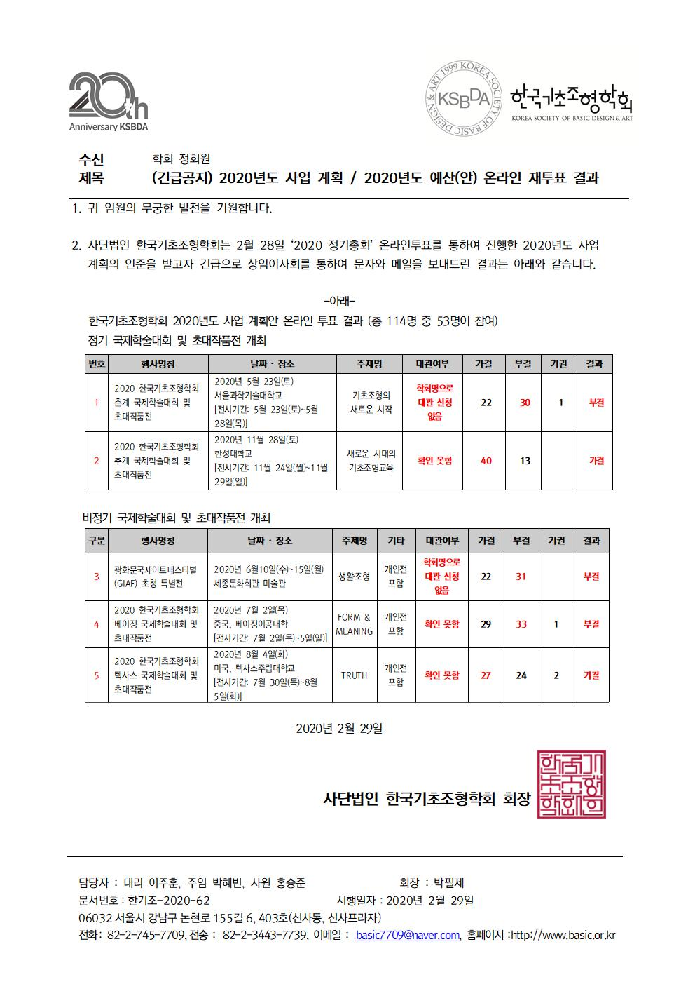 (긴급공지) 2020년도 사업 계획 / 2020년도 예산(안) 온라인 재투표 결과
