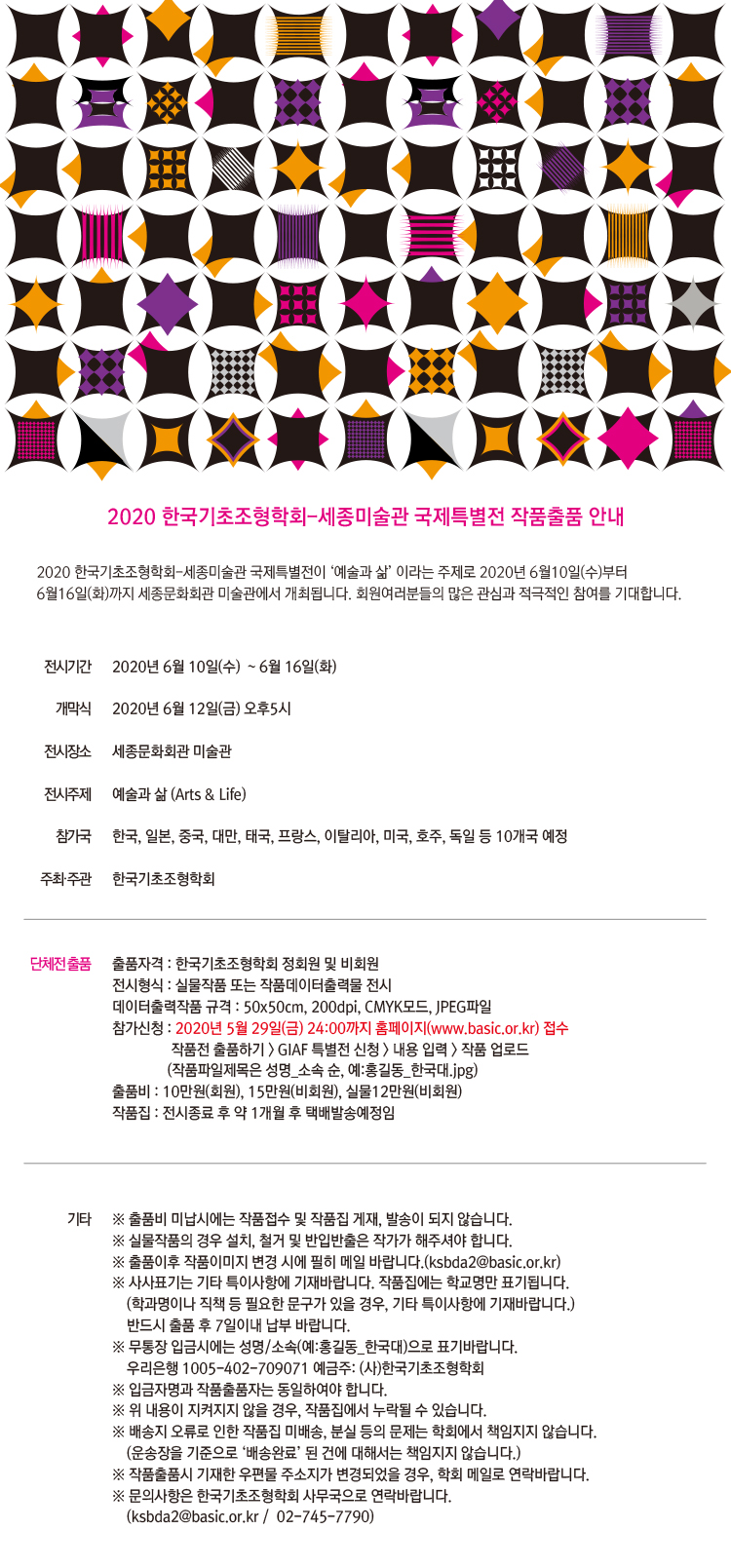 2020 한국기초조형학회 춘계 국제초대작품전 출품안내(연장)